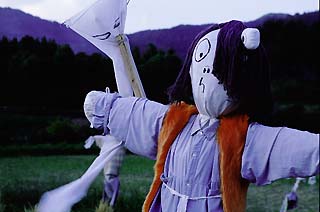 北嵯峨の田圃にはユニークな案山子がいっぱいです。