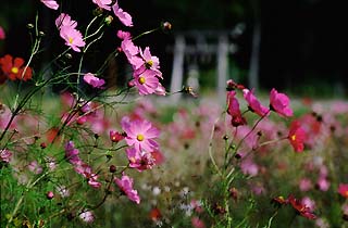 コスモスがいっぱい咲いていましたので、みんな車を降りて休憩していました。