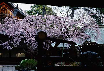 鴨川、祇園白川、八坂神社の枝垂れ桜、一力茶屋
