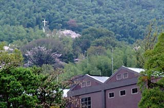 西山の中腹、枝垂れ桜が立派なお寺です。