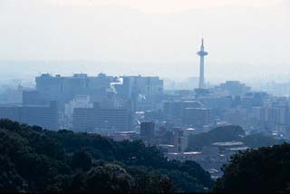 京都駅、京都タワーをのぞむ