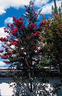和菓子屋さんの白壁と夏の百日紅です。
