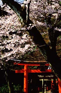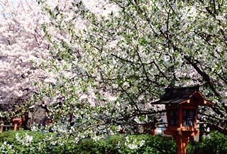 京都駅の近くの六孫王神社は小さい境内に色々な桜が咲いています。