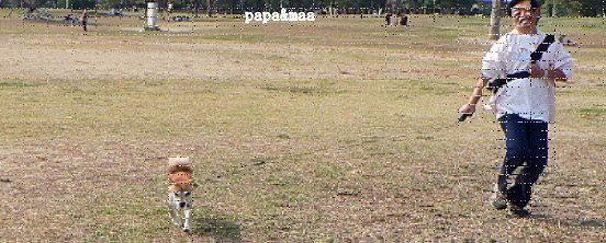 再度、二階へあがり、物陰を探していたら、なんとベンチチェストの上にへっぴり腰でのぼって、窓わくに手をかけ、外を見ている麻阿りんがいた。あんなに呼んだのに返事もせず夢中で何を見ていたのかと気になったので、その窓に近づいて見てみると、なななんと網戸にハエがとまっていた。麻阿りんは、そのハエを一生懸命観察していたらしい。なんという集中力! しかし、麻阿りんママ曰く