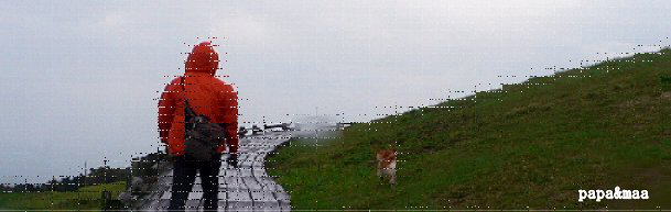 しかし、今日(2004年1月7日)、パパが家を出た後、遠くを自転車で走っていくパパの姿を見えなくなるまで、ママは麻阿りんをだっこして見せてあげたのです。すると、麻阿りんは、納得したのか、もう吠えようとはしませんでした。