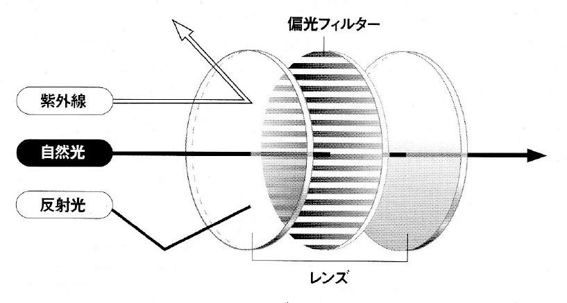『偏光』とは特定の方向の光のことで、これを透過させるメガネを偏光グラスと言われます。つまり水面に乱反射した光はいろいろな方向を持っているため偏光グラスで遮ることができ、水中が見やすくなるわけです。