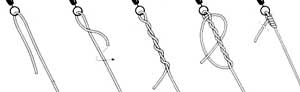 (両端を引張り絞め込むときに結び目をぬらしておけば固く結べます)