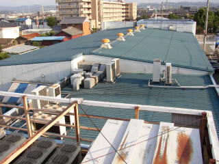 屋根:折板 おもに工場、倉庫の屋根 錆びの発生が起こりやすいく、 放っておくと穴が開くことも、 雨漏りの原因に |