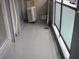 ベランダ:ウレタン防水 強靭で弾力性のある膜を作る フラットで滑らかな仕上がり。 雨水の滲入・防汚を目的 美観性・耐候性を目的 |