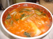 ピリ辛四川スープにチンゲン菜の歯ごたえ!ミンチ肉をレンゲですくい、天かすと、スープと一緒に食べるのも病みつきです。食べてる途中に、辛さに触発されて耳の中がかゆくなるのは私だけ?枚方では有名なお店です。私の元祖四川ラーメン店でもあります。