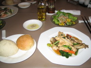 今日のメインは「ササミと小松菜のオイスター炒め」(写真)。やっぱりお得でおいしい(賛)。パンとスープはおかわり自由(満足)。暖かいパンにオリーブオイルと塩胡椒は病みつきに(満)。お陰でパンを6個も食べてお腹いっぱい。食べ過ぎて立ち入り禁止になるかも。。。