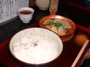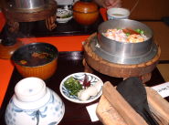 • 何と言っても釜めしの醍醐味はおこげ!はじめの1杯、2杯目は中の具材を楽しみ、3杯、4杯目で本命のおこげを味わいます。おこげのために味付けられたと思われるおこげの層を、お店の人に喜ばれるほどしゃもじでこすり落として食べています(幸)。香の物、赤だしもいい仕事してますね。