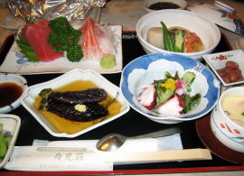 舟見荘オリジナルの和風会席料理です。海の幸、旬の野菜・山菜を存分にお楽しみ頂けます。