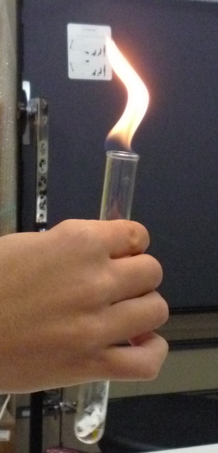30. ガスの液体または固体が入った試験管の口に火を近づけると