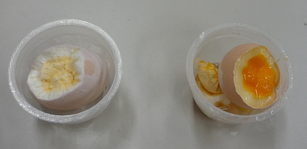 ★ 融けると元の生卵に戻るので,放置しないで硬い間に処理する。