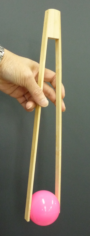 冷えた物体をつかむときは、液がしみ込まない革製の手袋を着用する。右の写真のような天ぷら用竹ばさみが便利。(100円ショップで購入)