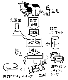 練乳(コンデンスミルク)や粉乳(粉ミルク)は、莫大な熱エネルギーを使って水分を蒸発させつくられているが、チーズは酵素の作用をうまく利用して、省エネルギーで水分を除き濃縮し、保存性を高めているといえる。