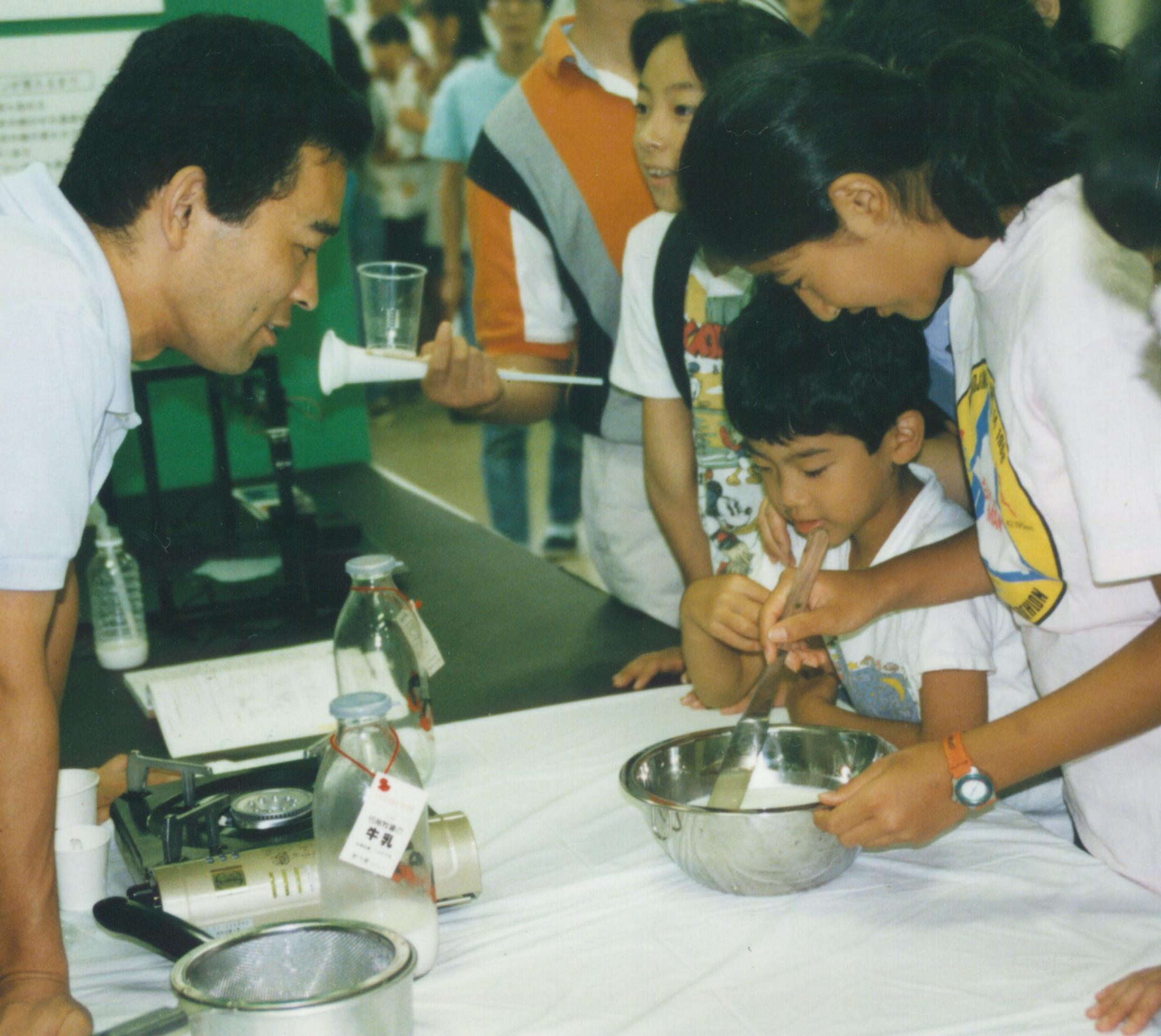 '96年度の高校3年の文系の選択者が受講している「総合理科」の授業の中で、チーズづくりを取り上げた。
