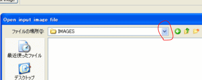 すると以下のようにパソコン内のファイルを選択する画面が開きますので、(ファイルの開き方を読み飛ばしたい方はこちら)以下の赤丸を付けたところをクリックして、フォルダーを選択します。