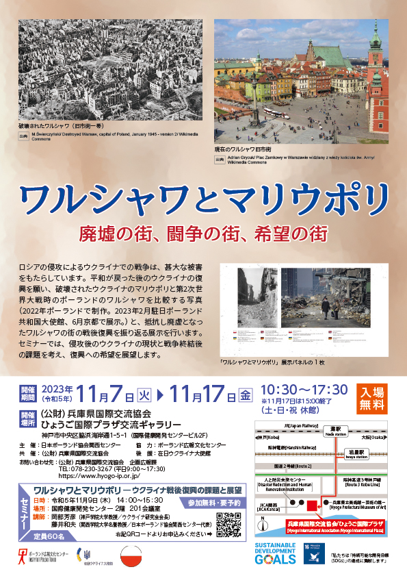 | 2023年11月7日(火)~11月17日(金) ・展示会 「ワルシャワとマリウポリ 廃墟の街、闘争の街、希望の街」 (公財)兵庫県国際交流協会 ひょうご国際プラザ交流ギャラリーにて |