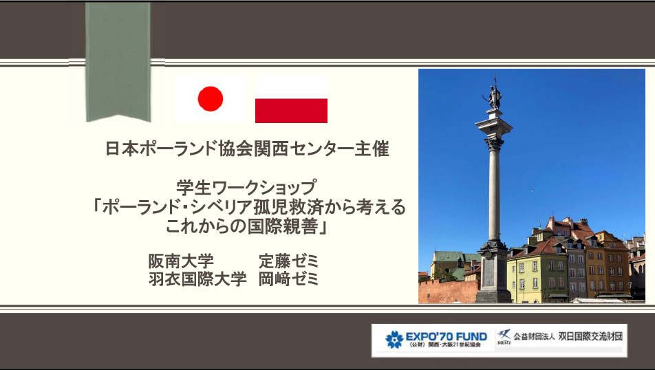 | 10月23日(日) ・100年前の危機がつないだ日本・ポーランドの絆 ーポーランド・シベリア孤児 神戸出港100周年記念ー 「ポーランド・シベリア孤児に関する学生発表会・ワークショップ」 K.G.ハブスクエア大阪にて 会員限定参加 <助成> ![]() |
