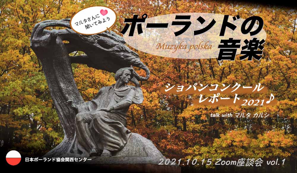 | 10月15日(金) ・オンライン座談会vol.1 「ポーランドの音楽ーショパンコンクール2021 マルタさんに聞いてみよう!」 ゲスト:マルタ・カルシ さん Zoomミーティングによるオンライン開催 |