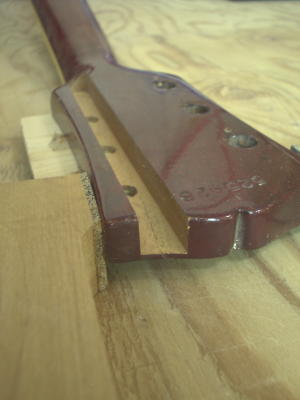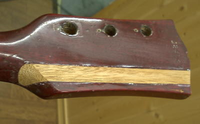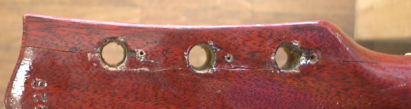 この後、この溝に合わせたマホガニーの埋木を造り張り合わせます