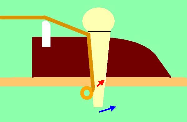 | このように弦のボールエンドはブリッジピンの先で止まっているのでは無くトップ板の裏側でトップ板とブリッジピンの角に挟まる形で止まっているのです 以前、「ブリッジピンが緩くてチューニングするとピンが抜けて飛んでいく」と云うお客様がいらっしゃり、ギターを確認させて頂くと別段ブカブカと云う訳でもなく私が弦を張ってチューニングすると抜けたりせずちゃんとチューニング出来ます ひょっとして?と思い「どうやって弦張ってます?」とお客様にお聞きしたところ上段の図の様にブリッジピンの先端にボールエンドを当ててずれない様に慎重に弦穴に差し込んでおられたようです そりゃチューニングしたらブリッジピン飛びますよね〜 「正しくはこうなってるんですよ」とボディの中に鏡を入れてお見せしたところ |