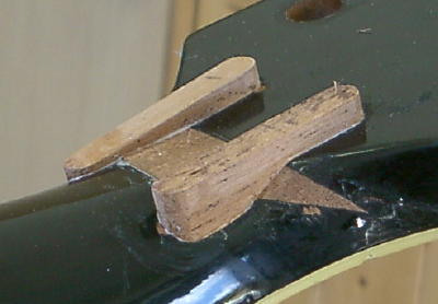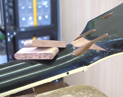 | この様にマホガニーを切り口に合わせて整形しはめ込みます |