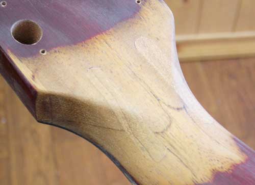 ダボ上部マホガニー材部分の木目はネック本体の木目と合わされる訳です