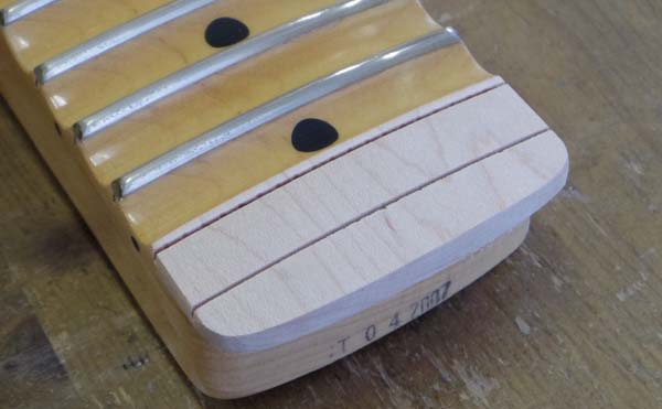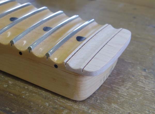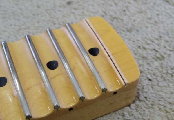 | 溝切り完了! このネックの場合この後22フレット部分にスキャロップド加工をしないといけません |