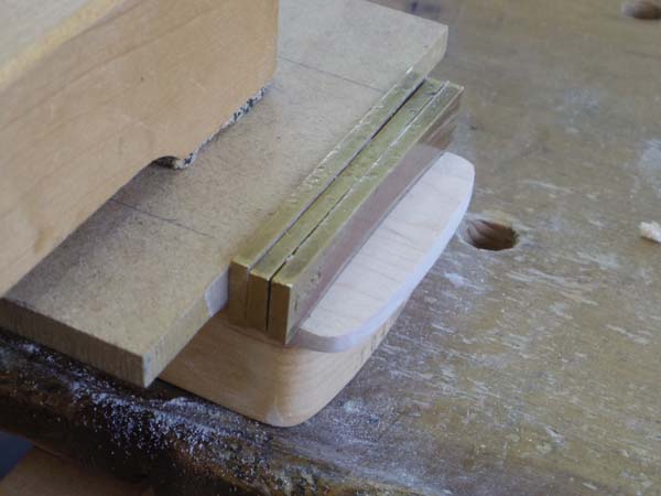 | この次にツバ部分の整形をしますがココなんかは不器用な私でも手作業で出来る事なのですがこの先 同じ加工するギター全ての形状が同じになるようにこの様な冶具を製作しました どのように使用するかと言うと |