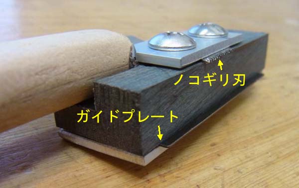 | この工具の本来の使用方法は画像のようにテーブル中央にあるピン(テーブル裏から貫通しています)に沿って上の刃物で削る作業をするモノで、言ってみればテーブルに固定されたピンがピックガード製作の時のベアリング付きの刃物のベアリングの役目をしていて、ベアリングと刃物が別々になっているのでベアリング付き刃物では出来なかった事が出来るようになるんです 詳しくは次回に記事にさせて頂きます |
