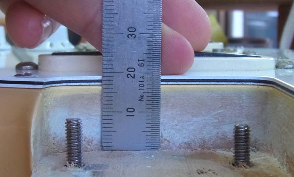 | スキャロップドされてますねぇ〜 イングヴェイモデルに施工ご依頼なんです フレットを抜いて露出したフレット溝に冶具の黒い板を差込みクランプで固定します |