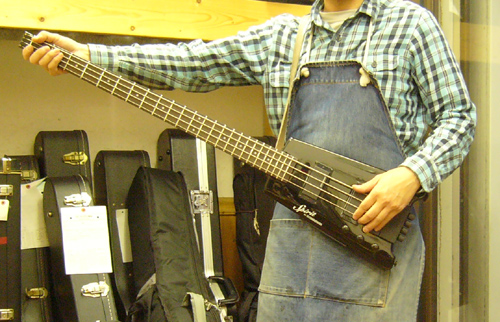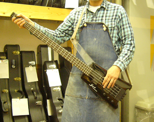 | スタインバーガータイプのヘッドレスベースを使用されているお客様から 「ローポジションが遠くて演奏性が悪くストラップピン位置を延長したい」と云うご依頼を頂きました |