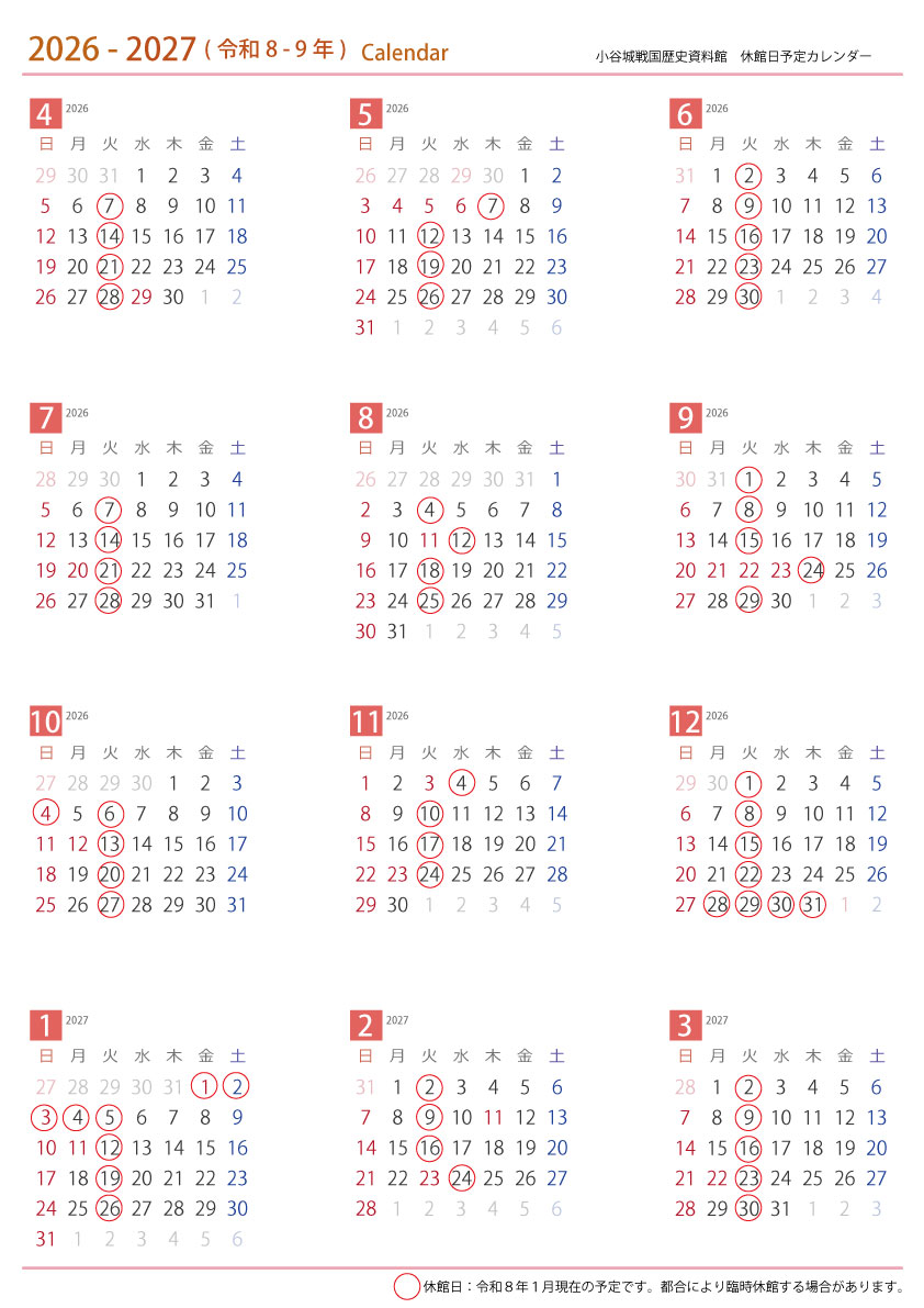 【2026年(令和8年)度の休館日(予定)を更新しました】