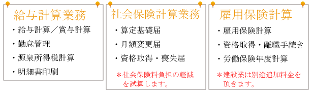| 社会保険関連書類作成 | 労働保険関連書類作成 |
