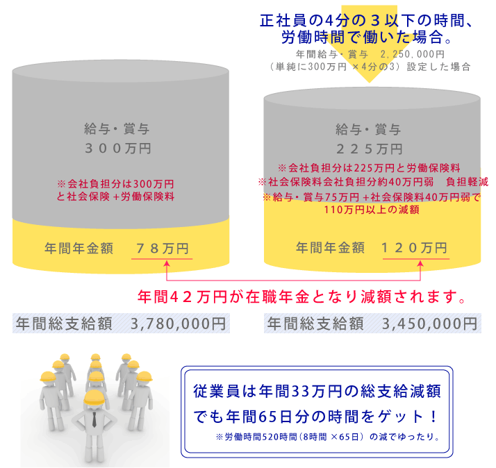 | 年金の支給停止が無ければ会社負担額より従業員の手取りは多い | |
