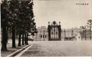 | 赤坂の高台、もと紀州候の藩邸のあったところで、明治六年、仮皇居と定めさせられ、同二十二年に宮城御竣工ありて後は、仮に東宮御所に充てられ、明治四十一年に、現在のような壮麗な宮殿を御造営になりました。 |