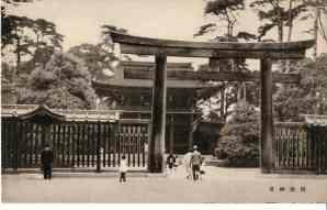 | 代々木練兵場に隣接する約二十二萬坪の霊域で、明治天皇及び昭憲皇太后を奉祀してあります。境内はもと御料地であった関係上、黒松、赤松、楢、榎、椋、欅などの大樹が多い上に、全国各地から奉献された樹木が、十萬本以上に達してをりますので、境内の森厳さは申すまでもなく、全国民崇敬の霊域として、まことに尊い限りであります。 |