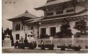 | 靖国神社の境内にある遊就館は、最近すっかり改築されて面目を一新しました。ここには日清、日露、日独の戦利記念品や、乃木将軍の最期を忍ぶ血染めの軍服、近くは満州事変や上海事変の戦利品など、得難い資料が陳列されていて、一般の参観が許されております。 |