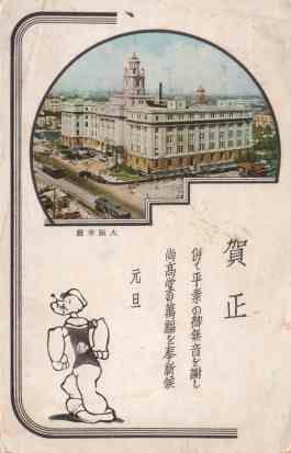 昭和12年の年賀状です。写真は先代の大阪市庁舎です。大正10年に堂島から移転した市役所は、ここ中之島にて現在も営業?しています。