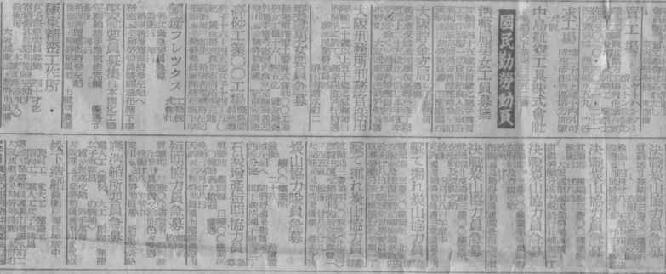 昭和19年4月28日付朝日新聞の求人広告、正確には動員広告です。
