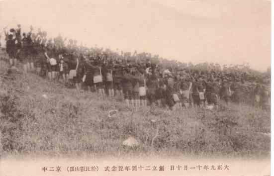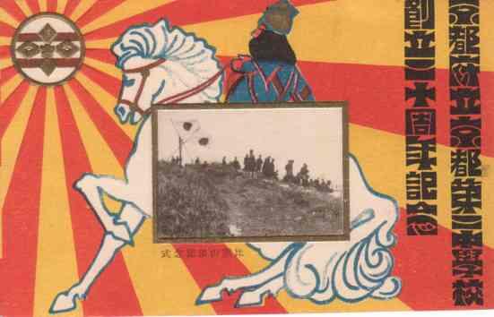 大正9年11月10日、創立二十周年記念ということで絵葉書が発行されたようです。この日が創立記念日なのかと思ったのですが、調べたところいまひとつわかりません。京二中は先にも書きましたが、明治33年の4月が創立となっていますし、現在の鳥羽高校は10月(おそらく15日に鳥羽高等学校設置条例が発布されていますのでこの前後ではないかと推測します)に創立記念日があるとのことがHPに書かれていました。