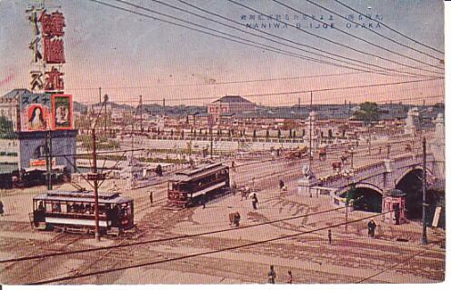 絵葉書は大正期のものと思われます。絵葉書の時代以前には、難波橋はもう少し西側に