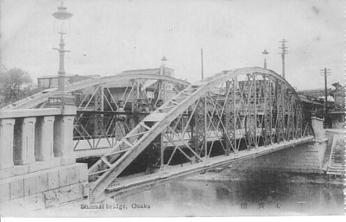 明治の心斎橋は、ドイツより輸入され、明治6年(1873)に架橋されました。大阪で2番目の鉄橋であったそうです。(ちなみに1番目の鉄橋は「高麗橋」です)