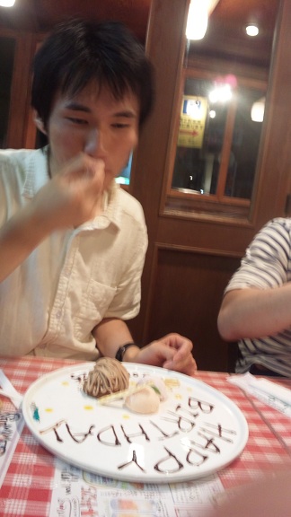 2012/7/25(水)今日は野村さん、岡崎さん、中辻さん、西川さん、恵美さん、仲澤さんと奈良教の広瀬さん、大教の中東くん、大教OBの松風さんがいらっしゃいました。 男子は土曜の試技会に向けてオールフリー、女子は段ちor平均台からの床というローテでした。私は暑さを確かめるために新しいユニフォームを来て練習しました。結論だけ言うと、恐るべしベロアです。作り直してもらいましょう。1回生は通しに少しずつ慣れてきたきたようでした。私はというと一番練ってきた床のふりをど忘れし、残念なことになりました。とりあえず目指せセクシーです。男子に関しては旧鞍馬で一生懸命練習する1回生が印象的でした。あとやっぱり広瀬さんの技にはみんなみとれてしまいますね。 そしてカッティング…床の下から現れた黒いヤツ。コールドスプレーと洗剤で弱らせ、最後は岡崎さんが仕留めてくれました。 練習後の集合では永井の発表により堤が宙に舞いました。 そんな堤の二十歳の抱負は「ぽろぽろ落とし物をしない」でした。堤お誕生日おめでとう。 今日の堤への誕生日プレゼントfrom2回生:ブラックサンダー×5、チュッパチャップス×2 今日の堤へのプレゼントfrom江口くん:フランフランのお皿(誰かの忘れ物) 今日の2回生:堤のお祝い 今日の2回生その2:堤に厳しい 食後の堤:落とし物をする カラオケに誘われた堤:大人の判断、明日はテスト 今日の小檜山:堤の判断に救われる