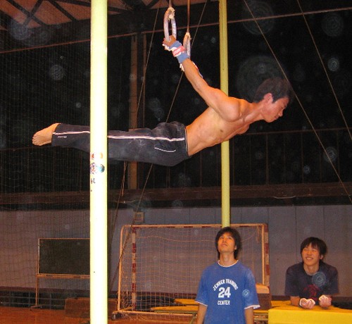 気候も暖かくなってきたせいか、OBは元気で、白畑さんが吊り輪でほん転倒立→ドッペル(下り)をされたり、