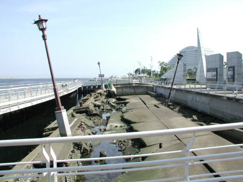 東岸壁に保存されている震災の風景