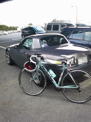 ロードバイクを購入してはや1ヶ月半、当座の目標にしていたビワイチにいよいよチャレンジ。何も乗らない事で有名な愛車のろどすたに自転車乗っけられるキャリアの装着練習もしたし、自転車も綺麗にメンテしたし準備は完璧。このシーズン真昼間にペダル漕ぐのは熱中症やらでマジで死にかねないため、なるべく殆どの区間を気温が上がり切る前の午前中にこなせるよう5時にはスタートを切れるよう家を出発したはずなのに、琵琶湖までかかる時間を完全に読み誤って到着したら既に6時。思い切り出鼻をくじかれつつ出走準備に着手。
